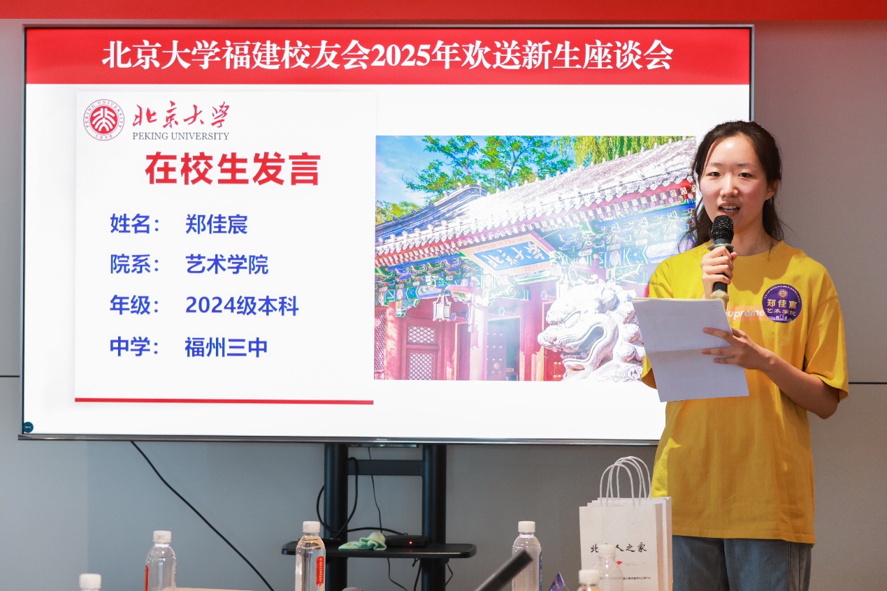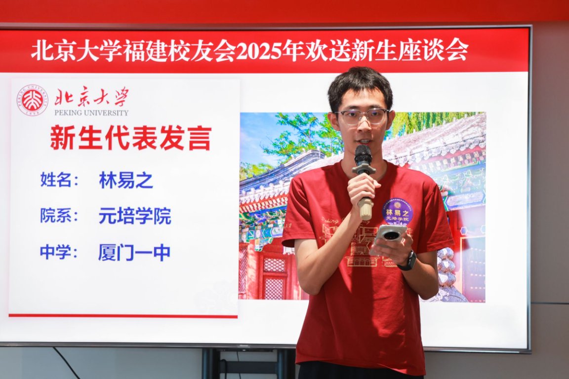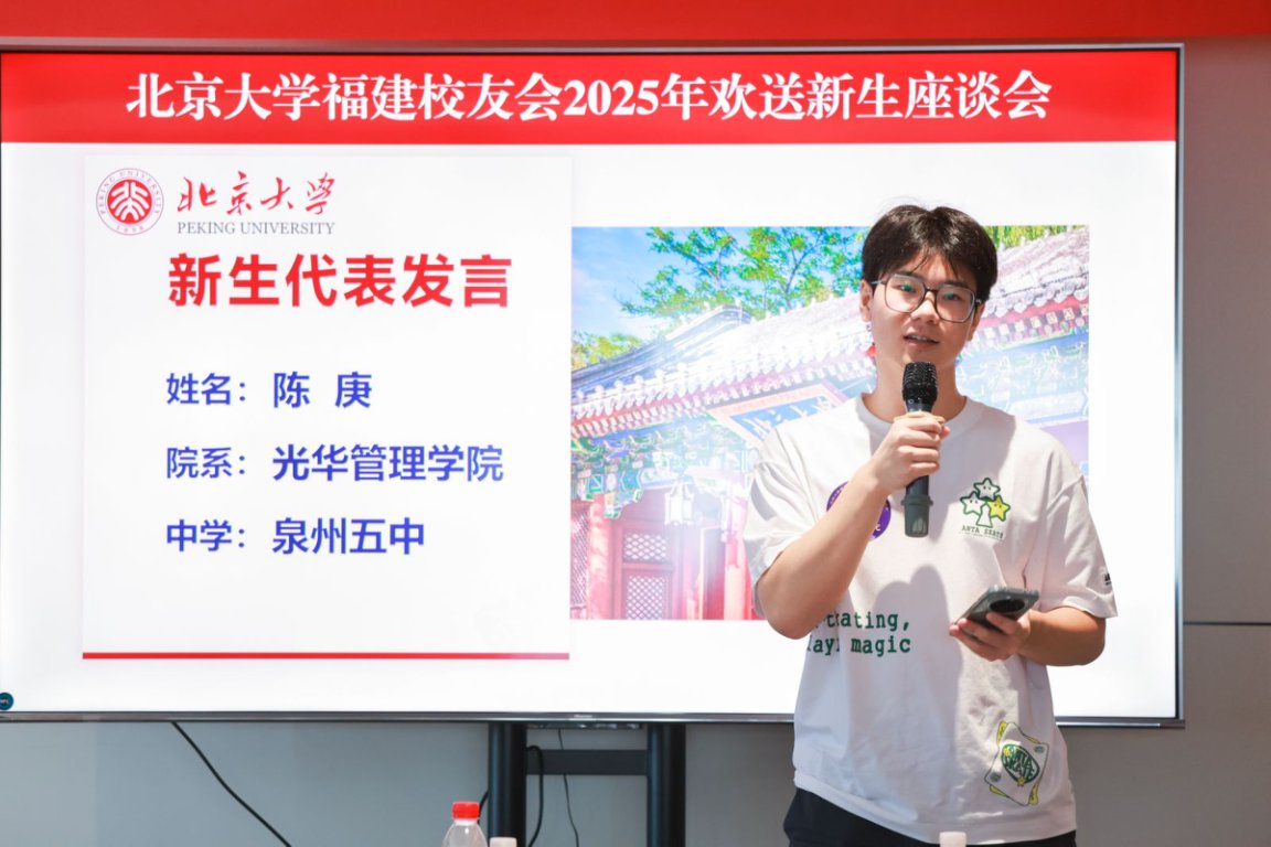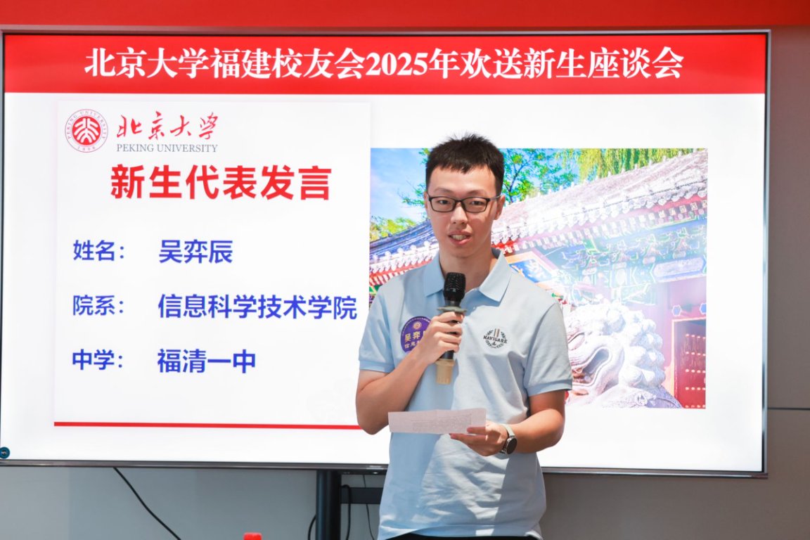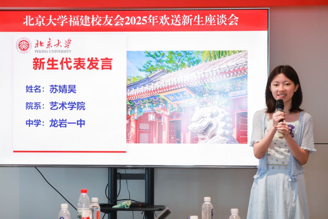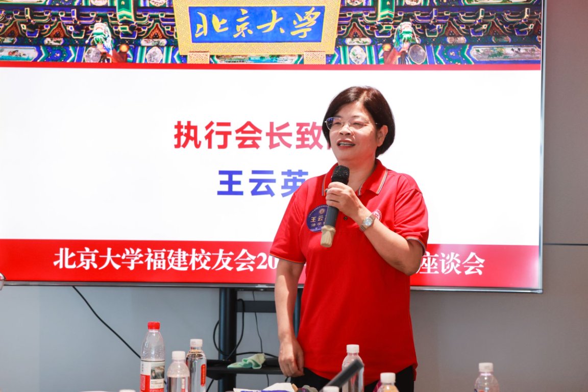 王云英以“时序已新秋,夏意尤未尽”的诗意开启致辞,她首先代表福建校友会对今年被北大录取的优秀闽籍学子致以最热烈的祝贺,继而强调北大兼容并包的思想内核以及始终坚守的学术追求,鼓励新生拥抱大学三大挑战:学习方式的转变、人际交往的重塑、自我定位的调整,同时欢迎大家利用校友会平台进行交流,也期待新生寒暑假回闽分享成长点滴。