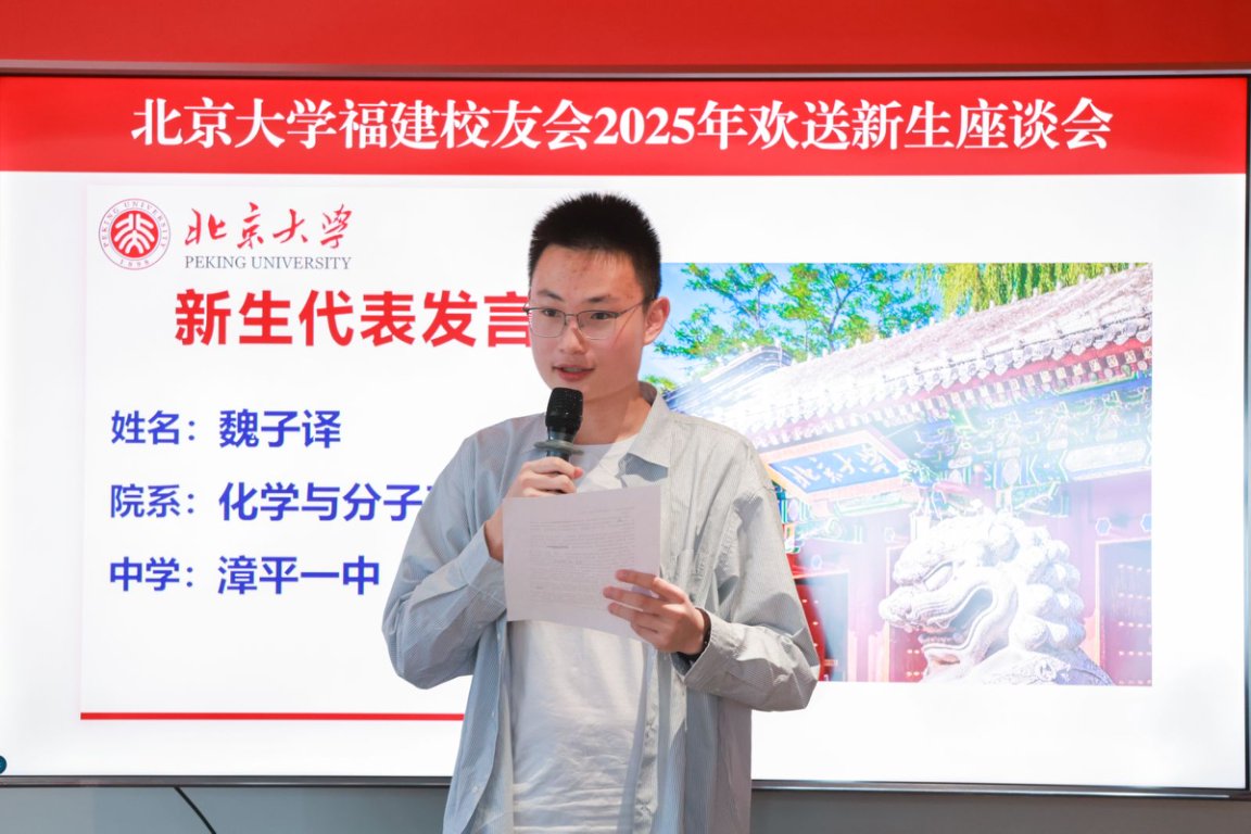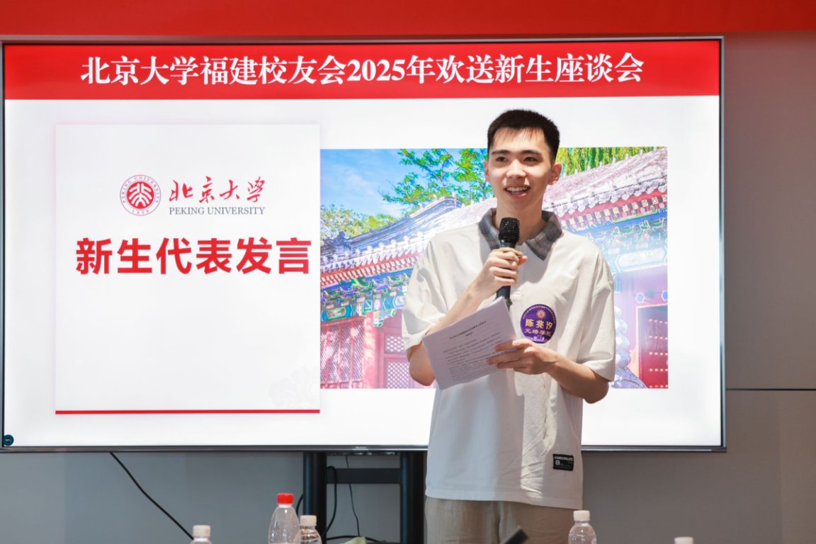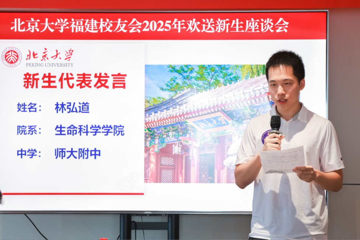 七位新生代表真挚地描绘了他们心中的北大梦与八闽情:林弘道直面竞赛失利与课业波折,以“穿林打叶何妨吟啸徐行”诠释北大人的从容本色;林易之笑称高中是“在枯燥重复中寻找星光”,化学竞赛的“变态难题”磨砺出科研初心;苏婧昊回忆北大夏令营期间在石坊通宵守候观赏日出的震撼,未名湖跃升的旭日成为高三的信仰图腾;吴弈辰将北大从“遥不可及的地平线”变为“触手可及的起跑线”,立志以计算机之长“回馈福建乡土,延续北大精神”;魏子译深信“人生每一步都是成长的阶梯”,并期待与同窗共挥球拍、共奏琴音,让青春在北大多彩绽放;陈庚立志以“滴水穿石”的韧性,让年轻的理想扎根于每一天的耕耘;陈兆汐以生物学隐喻人生,“细胞运作需细胞器协同,知识融会需文理兼修”,将不断拓展人生新的维度。
