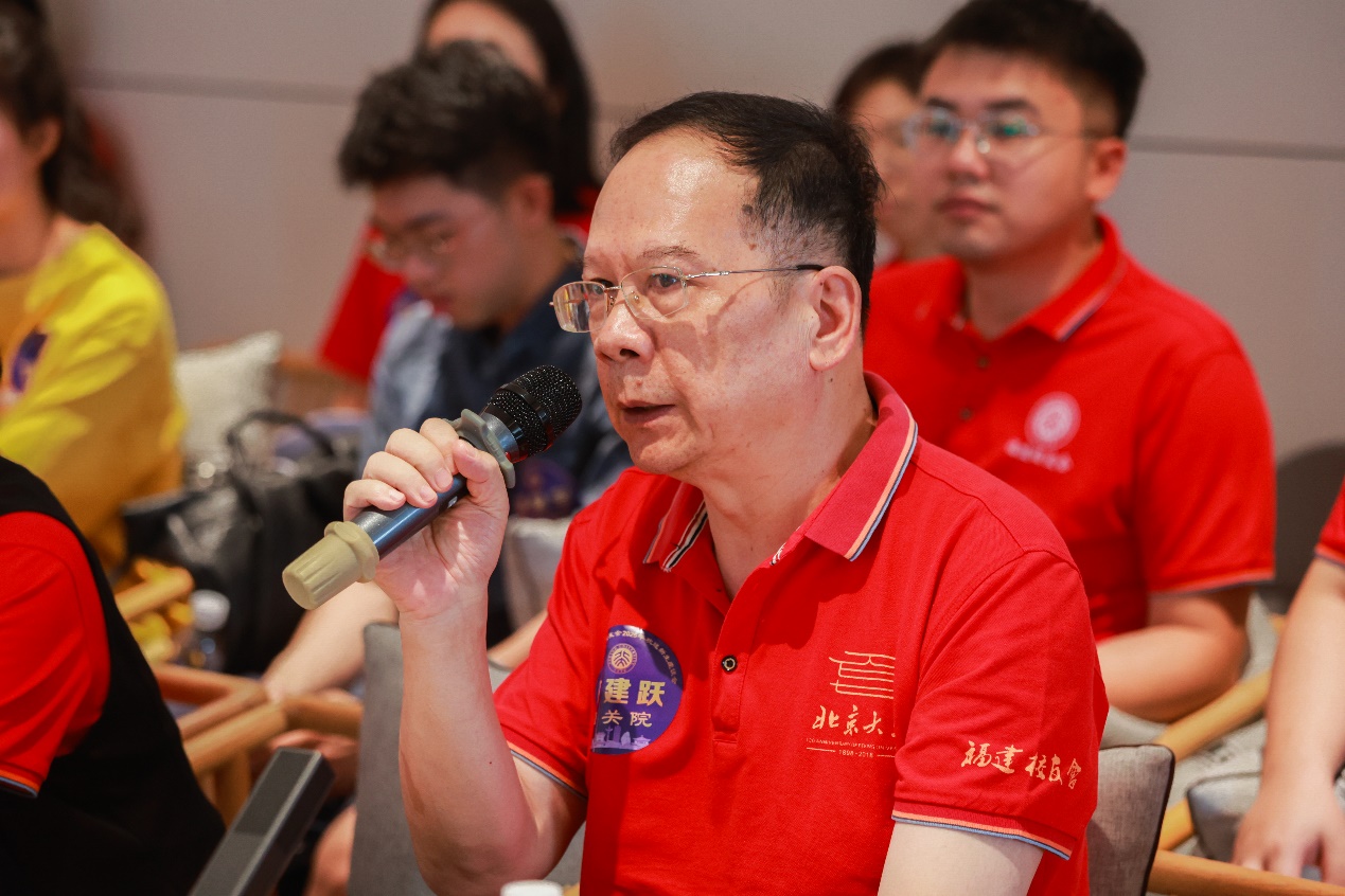最后,老校友的分享将座谈会推向高潮。陆开锦坦言当年孤身赴京的茫然,对比今日校友会凝聚的温暖,更珍视“北大人”三字的分量,丈量社会责任,更标记精神高度,我们不做高塔上的旁观者,而要做泥土中的耕耘者。柯建跃接续历史长河的澎湃:北大从戊戌变法的星火中诞生,在五四运动的浪潮里挺立,从接到录取通知书那刻起,你们的血脉已融入北大百年赤诚。陈正勋则抛出“北大人三重境界”:“找北”是要追寻热爱、“成大”是要打破学科壁垒、“做人”是要胸怀天下,要记住那份“被选择的庄严感”。茅钰才则送上温暖贴士:在北大,既要好好学习——推开任何感兴趣的课堂之门;也要好好生活——在“百团大战”中找到属于自己的角落,更重要的是,想清楚自己要成为什么样的人,把个人成长与国家民族的期待放在肩上。