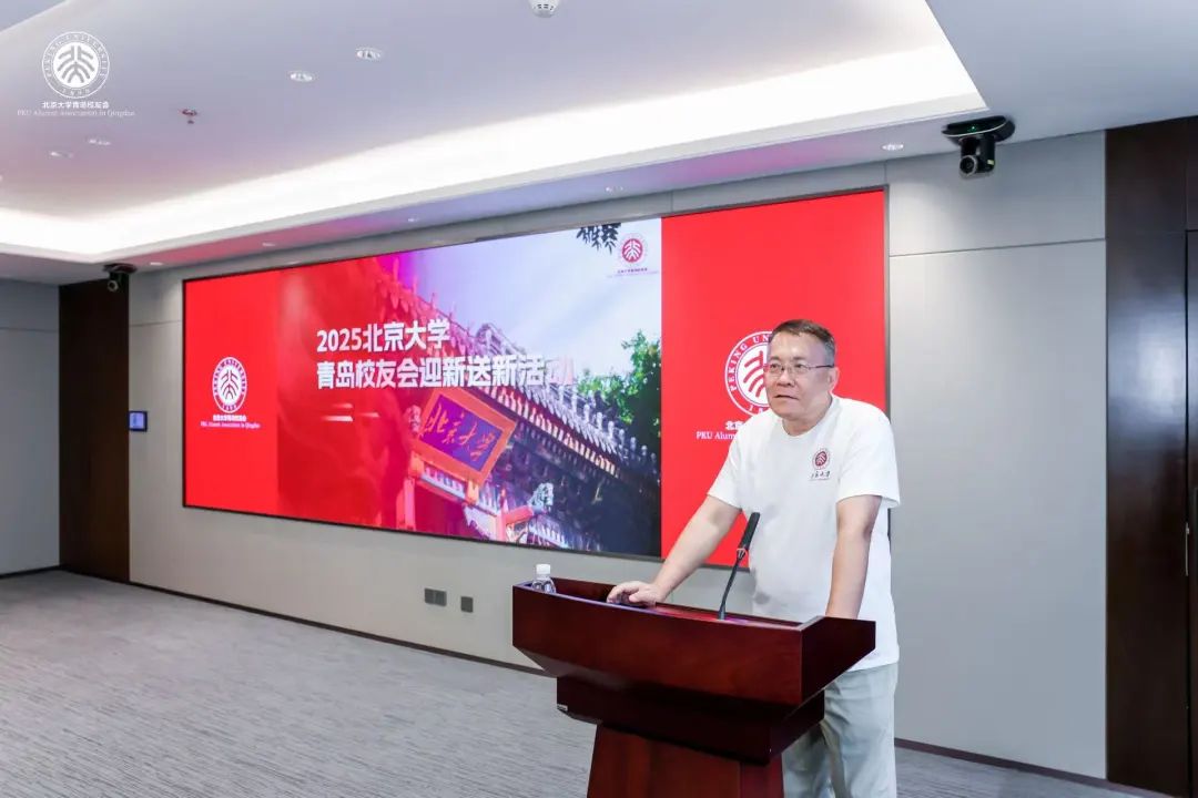 杨军、马论业两位老学长也分别发表讲话。马论业深入介绍了迎新·送新活动的由来与传承,勉励青年校友要将北大的精神与青岛发展的机遇相结合,志存高远,脚踏实地,为家乡的建设贡献北大人的智慧与力量。